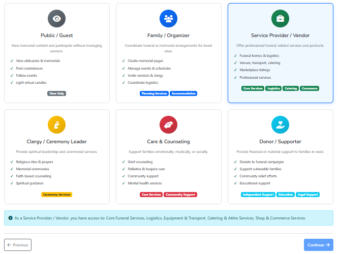 I am trying to set up a way of allowing a user to select multiple options applicable to their account type, in the form of cards, then such selection be prefilled in a registration form in the next step. I am looking for a way on how I can set an event that would achieve this. See image below. each card represents a potential selection.